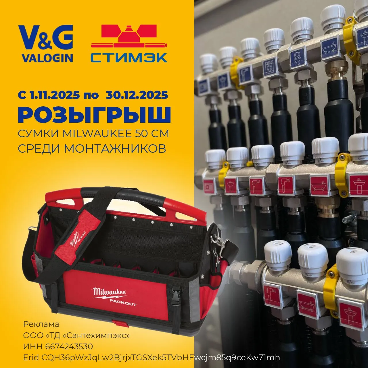 Коллектор распределительный, вентильная регулировка, 1"- 4 выход х 3/4" евроконус VG-901303 VALOGIN4 130,92 руб.