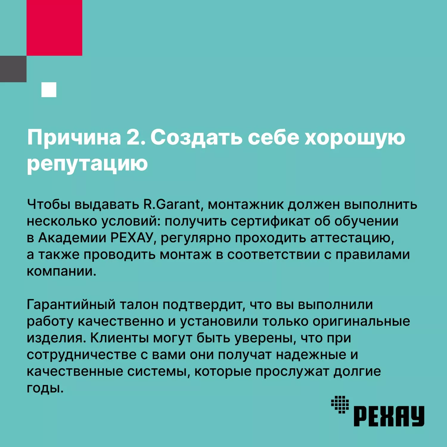 Делитесь с коллегами, чтобы они тоже знали о преимуществах гарантии РЕХАУ.