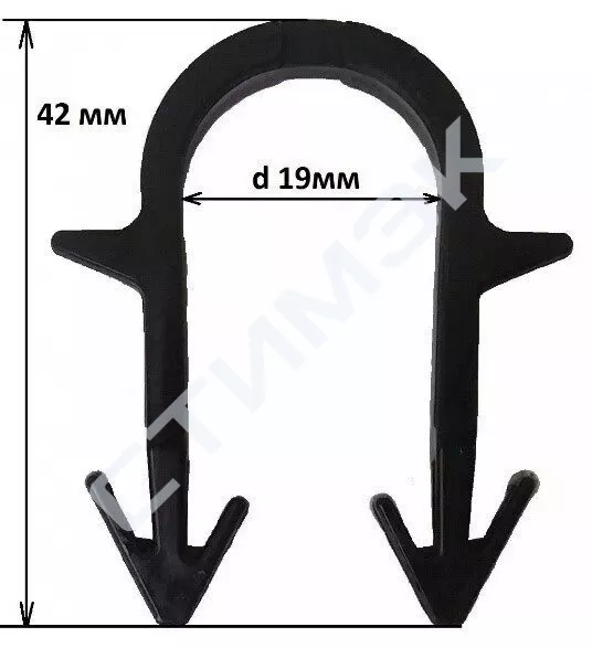 Специально разработанная пластиковая скоба служит для надежного крепления любых типов труб систем теплого пола к теплоизоляции из экструзионного пенополистерола. Изготавливается методом литья из полипропилена черного цвета, с зубцами в основании. Подходит для всех типов труб напольного отопления.