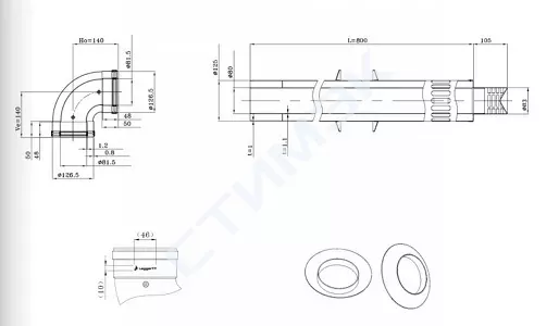 Дымоход концентрический DN80/125х800мм, горизонтальный, комплект WT80125-01 WT80125-01