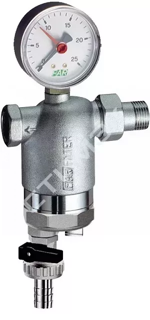 Фильтр 100мкм, с магн.встав., с манометром, Max: 95 °C, 25 бар, 1/2" ВР-НР FA 39F6 12100 FAR FA 39F6 12100