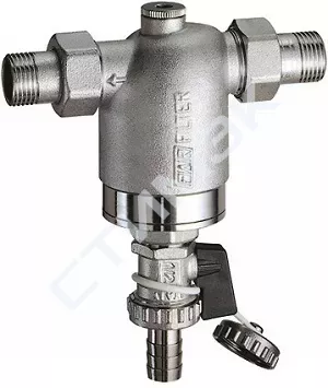 Материал корпуса DZR-латунь хромированное покрытие. Картридж сетка изготовлен из нержавеющей стали AISI 304, размер ячеек 300 мкм.