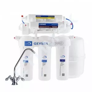 Технология обратного осмоса, использованная в фильтре Гейзер Аллегро М, заключается в фильтрации воды через полупроницаемую мембрану.