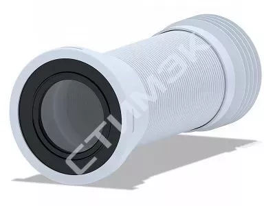 Длина трубы 250-550мм, присоединение к унитазу через резиновую муфту, выход на канализацию 100-110 мм. Для чугунных труб канализации. Удлинители гибкие выполняют функцию фановых труб и предназначены для соединения унитаза с канализационной трубой. Основное преимущество в том, что они легко монтируются и нет необходимости заранее замерять угол и расстояние (как в случае с фановыми трубами). Гофрированная часть трубы армирована металлической проволокой, что значительно повышает прочность и износостойкость изделия.