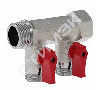 Коллектор распределительный шаровой, 2 выхода 3/4" - 2 выхода х 1/2" VG-902101 VALOGIN VG-902101