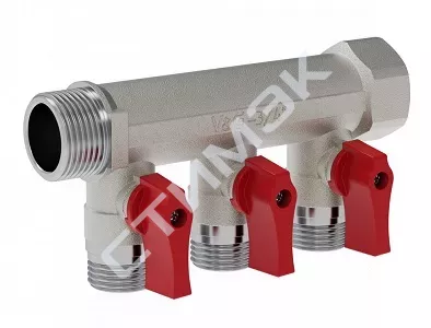 Коллектор распределительный шаровой, 3 выхода 3/4" - 3 выхода х 1/2" VG-902102 VALOGIN VG-902102