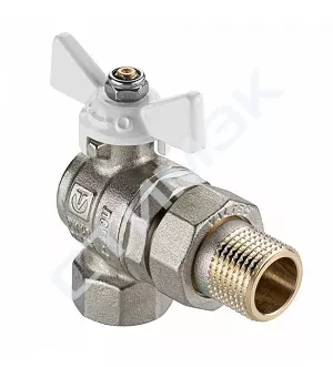 Кран шаровой BASE-ГОСТ угловой со сгоном с белой рукояткой-бабочкой вн.-нар. DN15, PN40, 1/2" VT.228 VT.228S.NW.04