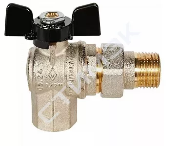 Кран шаровой угловой с полусгоном ручка-бабочка ВР-НР 1/2 Oregon 05940001 BUGATTI 05940001