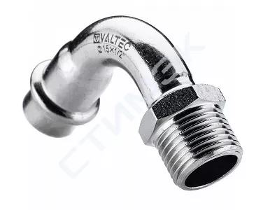Отвод 90° с переходом на НР нерж сталь 15 мм х 1/2" VTi.957.I.001504 Valtec