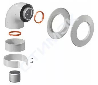 Отвод коаксиальный 60/100 (хомут в комплекте + втулка D60 L-50) арт.K-01B, KRATS