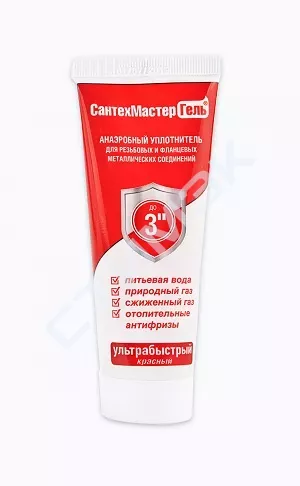 СантехМастер Гель Красный предназначен для резьбовых соединений от 1/2 "(дюйма) с зазором больше стандартного, такие как сталь, чугун и т.п. и от 1"(дюйма) для стандартных резьб.