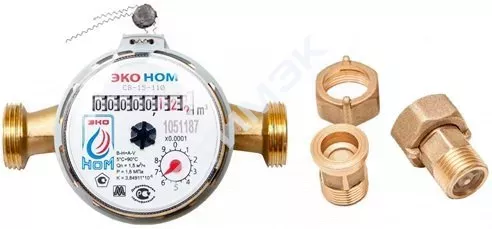 Счетчик воды универсальный ЭКО НОМ-СВ-15-110 + КМЧ и обратным клапаном СВ110-004