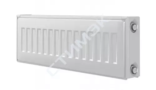 Тип подключение - боковое. Модификация радиатора с конвекционными пластинами, увеличивающими теплоотдачу радиатора. Боковые поверхности закрыты защитными панелями, сверху радиатор имеет защитную решетку.