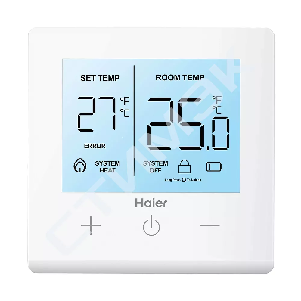 Комнатный термостат Haier Ecoheat RT-i предназначен для подключения к теплогенератору и поддержания заданной температуры окружающего воздуха в помещении.