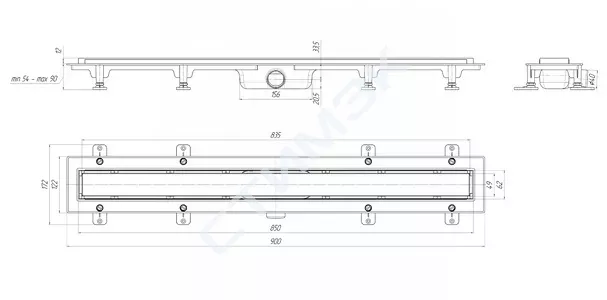 Линейный душевой трап с выпуском 40 мм и длиной 850 мм предназначен для эффективного водоотведения в душевых и ванных комнатах с облицовкой плиткой.