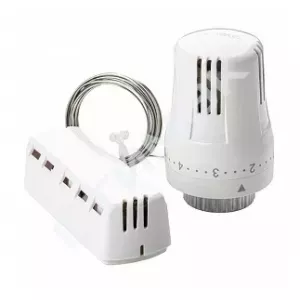 Описание: Жидкостная термостатическая головка с настенным датчиком предназначена для поддержания в помещении требуемой температуры воздуха путём регулирования расхода теплоносителя через отопительный прибор. Термочувствительный элемент предназначен для настенного крепления и соединен с термоголовкой капиллярной трубкой. Данное решение применяется в тех случаях, когда термоголовка установлена за плотной шторой, в нише, за экраном и температура воздуха вокруг неё не соответствует средней температуре воздуха в помещении.