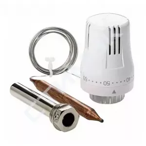 Описание: Жидкостная термостатическая головка с выносным погружным датчиком предназначена для поддержания требуемой температуры теплоносителя путём регулирования его расхода через термостатический клапан (двух- или трехходовой). Выносной датчик соединен с термоголовкой капиллярной трубкой. Датчик устанавливают в латунную гильзу (входит в компл. поставки) с наружной резьбой на 1/2". Заданное значение температуры воздуха устанавливается в диапазоне от 20 до 60°С.